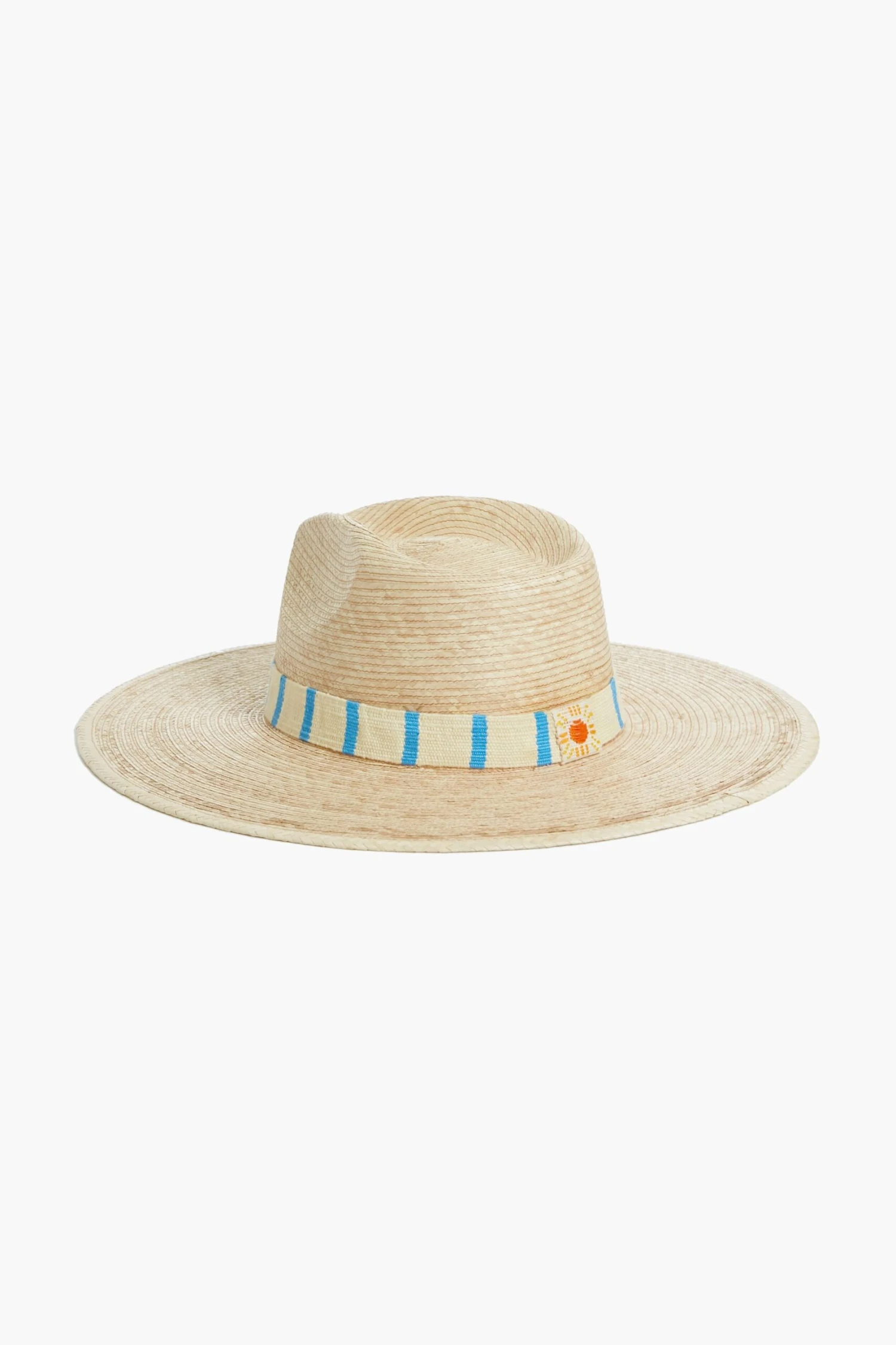 Keep the sun off your face in style! The Susana Palm Hat features a statement band around the crown made from woven cotton with blue and white stripes. Each one is handmade from palm fronds of the banks of the Chixoy River by female artisans in Guatemala, so this is a purchase you can feel good about and look even better in. Pair with denim of all colors, or with your favorite sundress or cover-up for a chic, seasonal look.Â