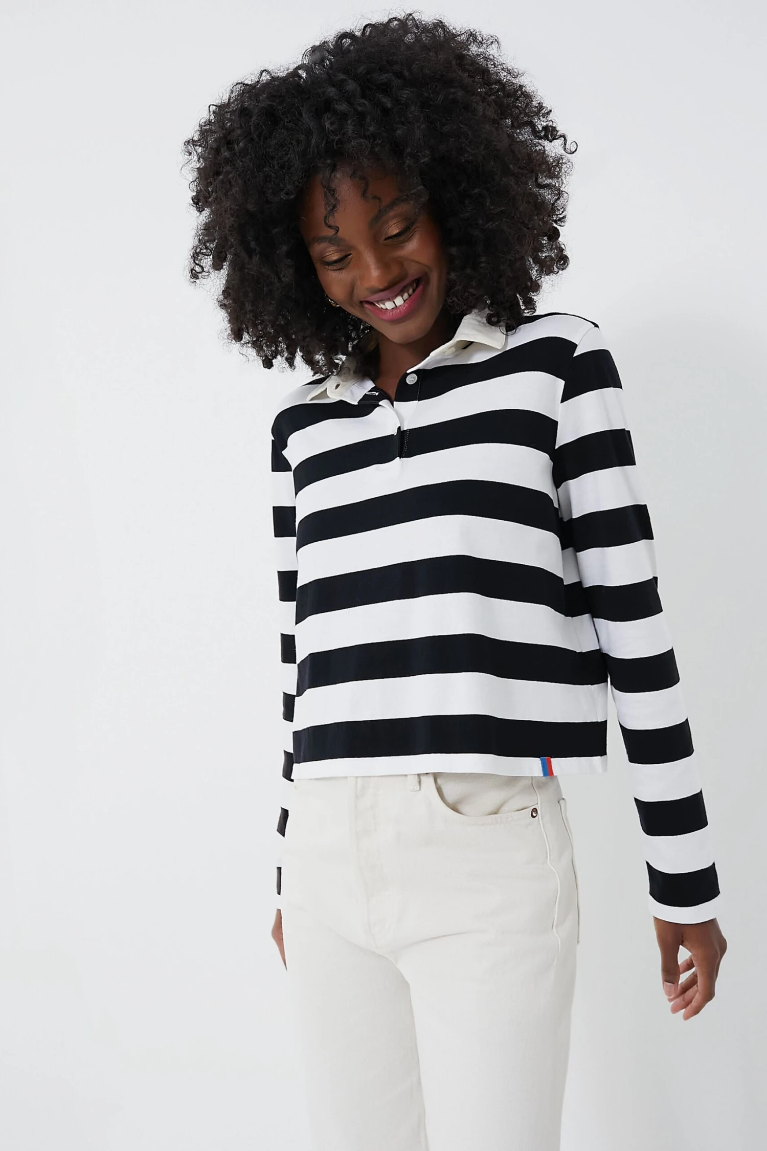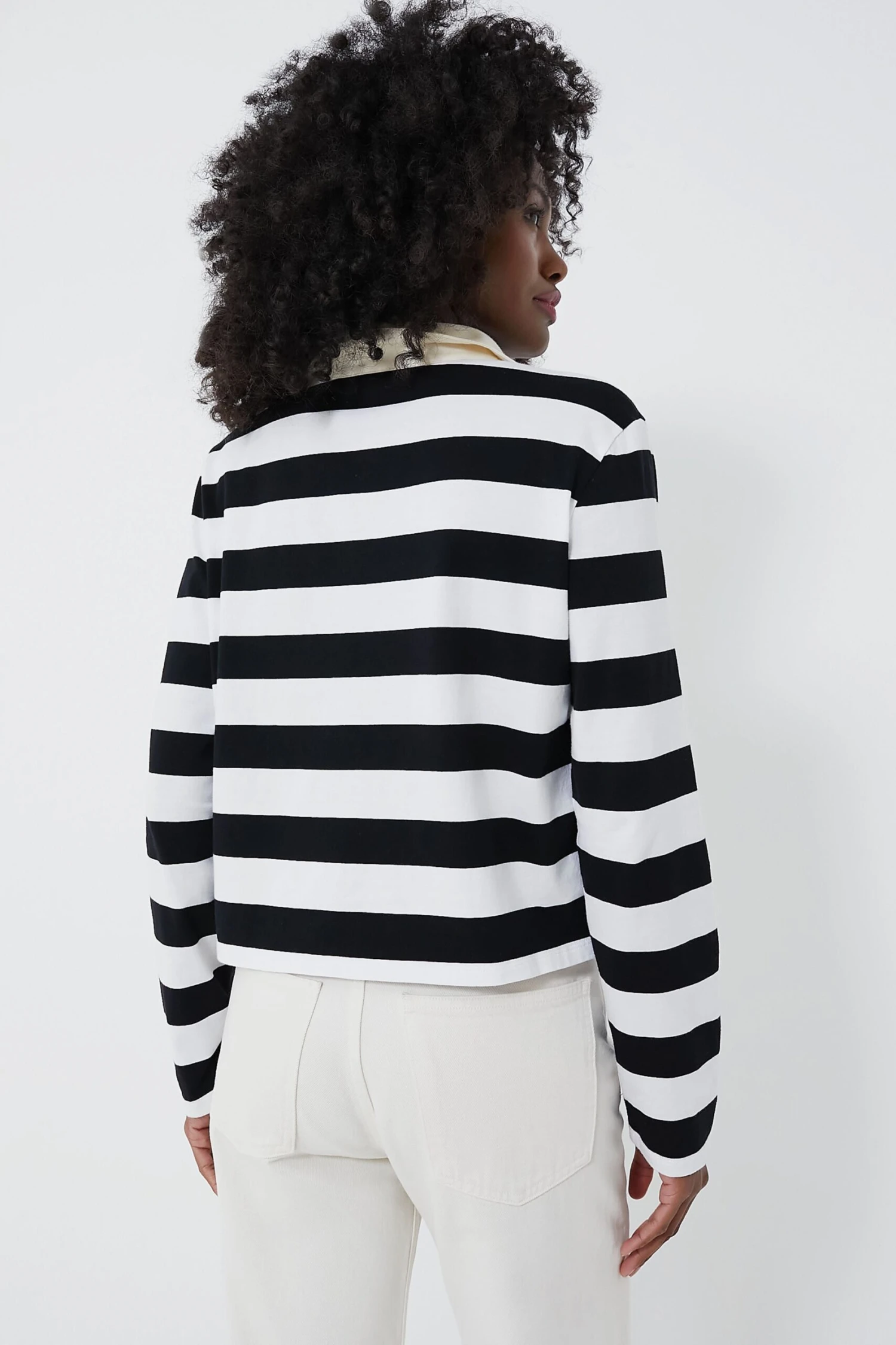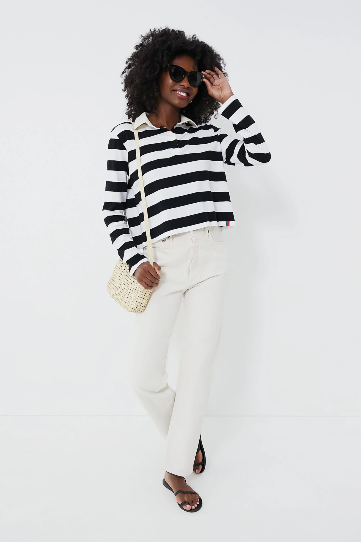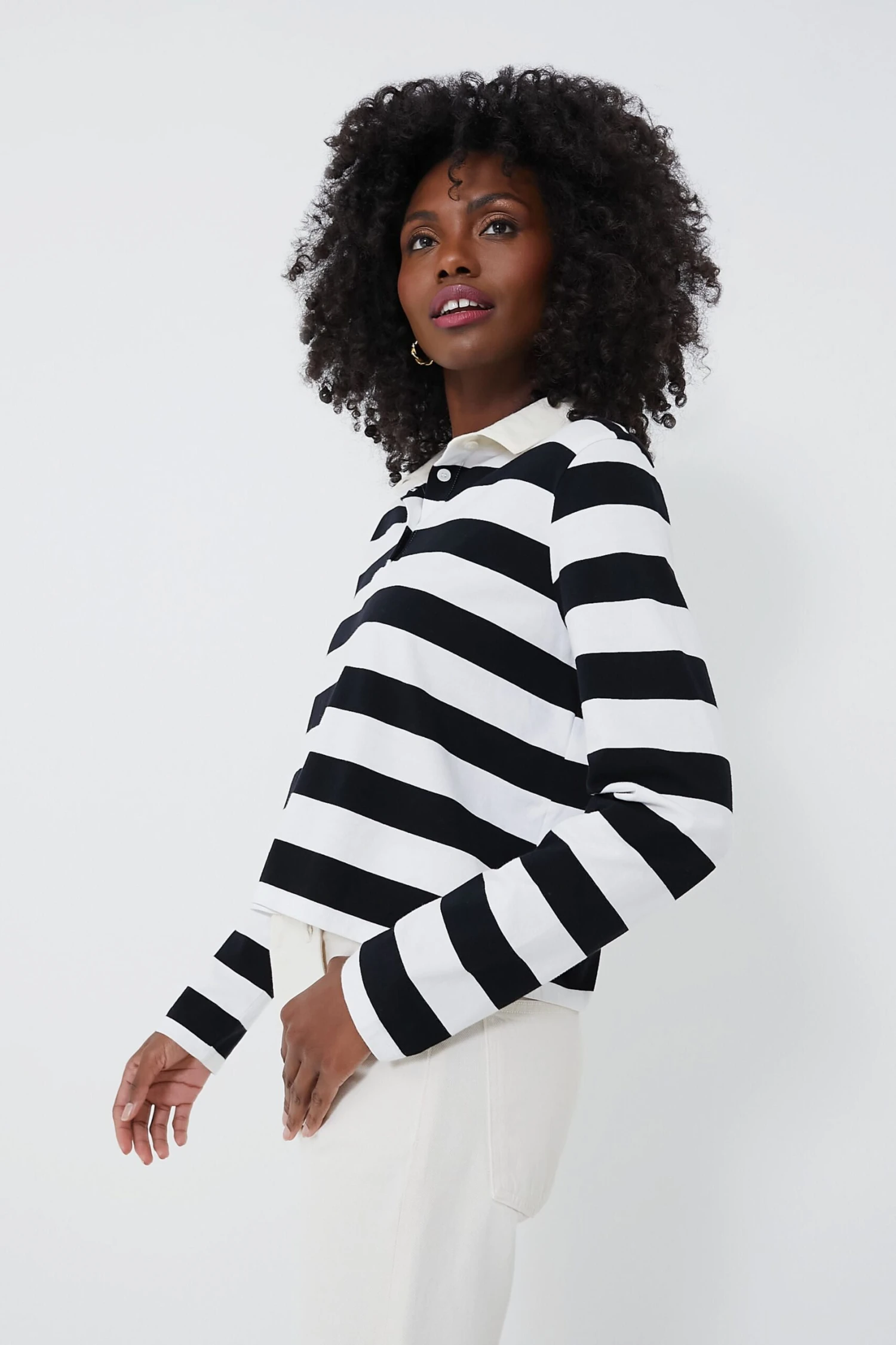In a super-soft cotton, the White Black and Cream Mini Rugby is the ultimate sporty-cool casual top. With a slightly boxy fit, this cropped silhouette features classic stripes, a contrast collar, and a partial button front placket for that timeless style we know and love. Wear it with everything from shorts to denim to leggings for off-duty weekend dressing.