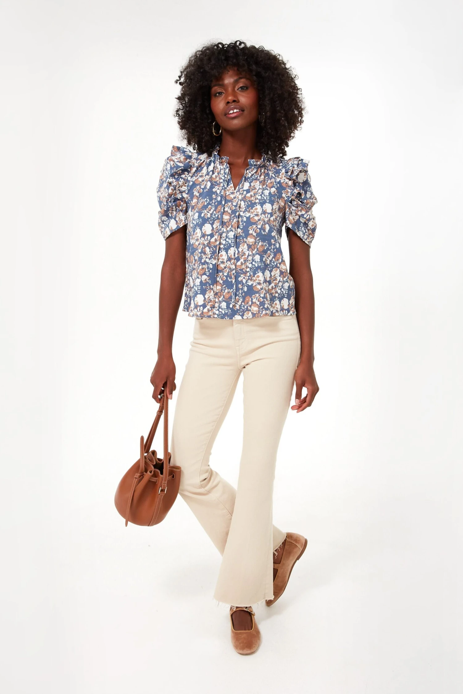 Lean into feminine florals and darling details with the Vintage Blue Loire Top. Featuring a charming botanical print in wearable shades perfect for the coming season, this easy blouse has ruching details at the puffed sleeves for a bit of added dimension and an element of fun. With a slightly cropped hem that was made for high-waisted denim, this number is sure to be on repeat in your closet. Pair with denim and a tote for a day of retail therapy with the girls, or with trousers for an updated office look.