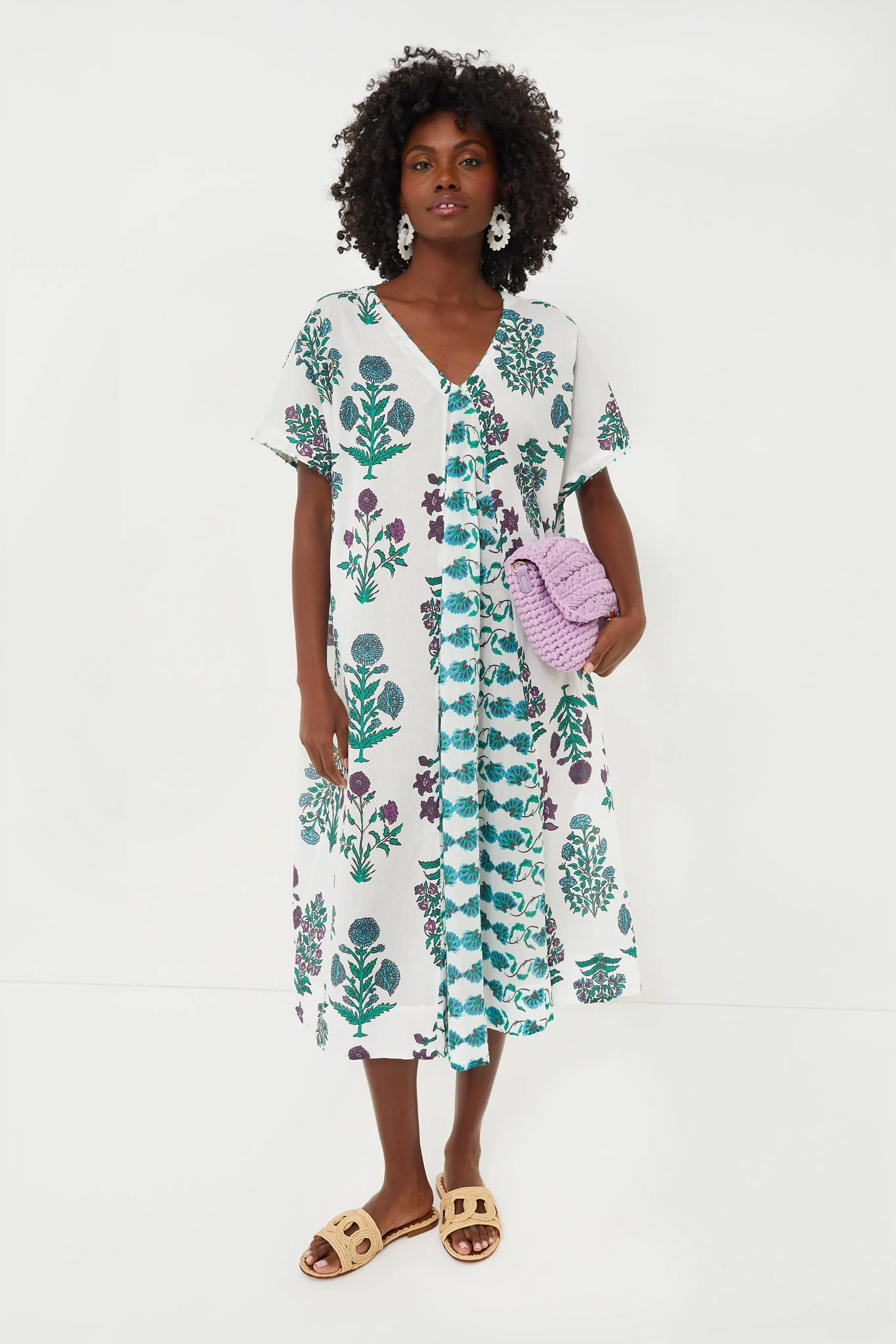 The Violet Olympia Tilda Kaftan is the ideal vacation style- the easy silhouette allows it to be worn on its own or as a coverup, and the fun contrasting patterns are vibrant and eye-catching. Elegant, comfortable, and versatile- we are styling this look with sandals and a sun hat or with wedges and statement earrings!