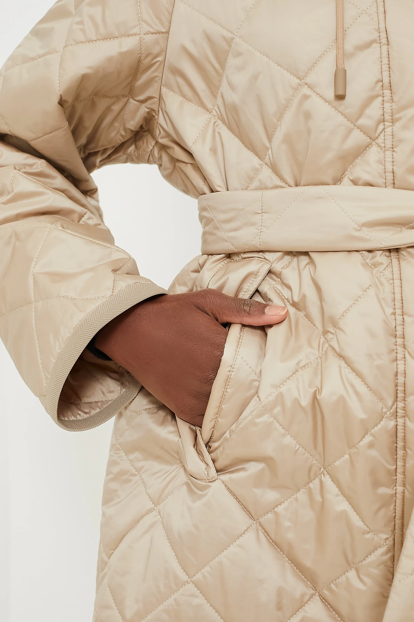 The Sand Ribera Jacket is a timeless super chic addition to your wardrobe. Crafted from a water repellent technical fabric with 80 g LUXEPAD insulation, this diamond quilted luxurious coat features a slightly flared, comfort fit silhouette, side pockets and a self-tie belt to cinch in the waist, wear it with belt or without. Effortless and easy, you can throw it on as you run out the door with whatever you’ve got on from denim to joggers, or pair it with a chunky knit and some sleek tall boots for chicest results.