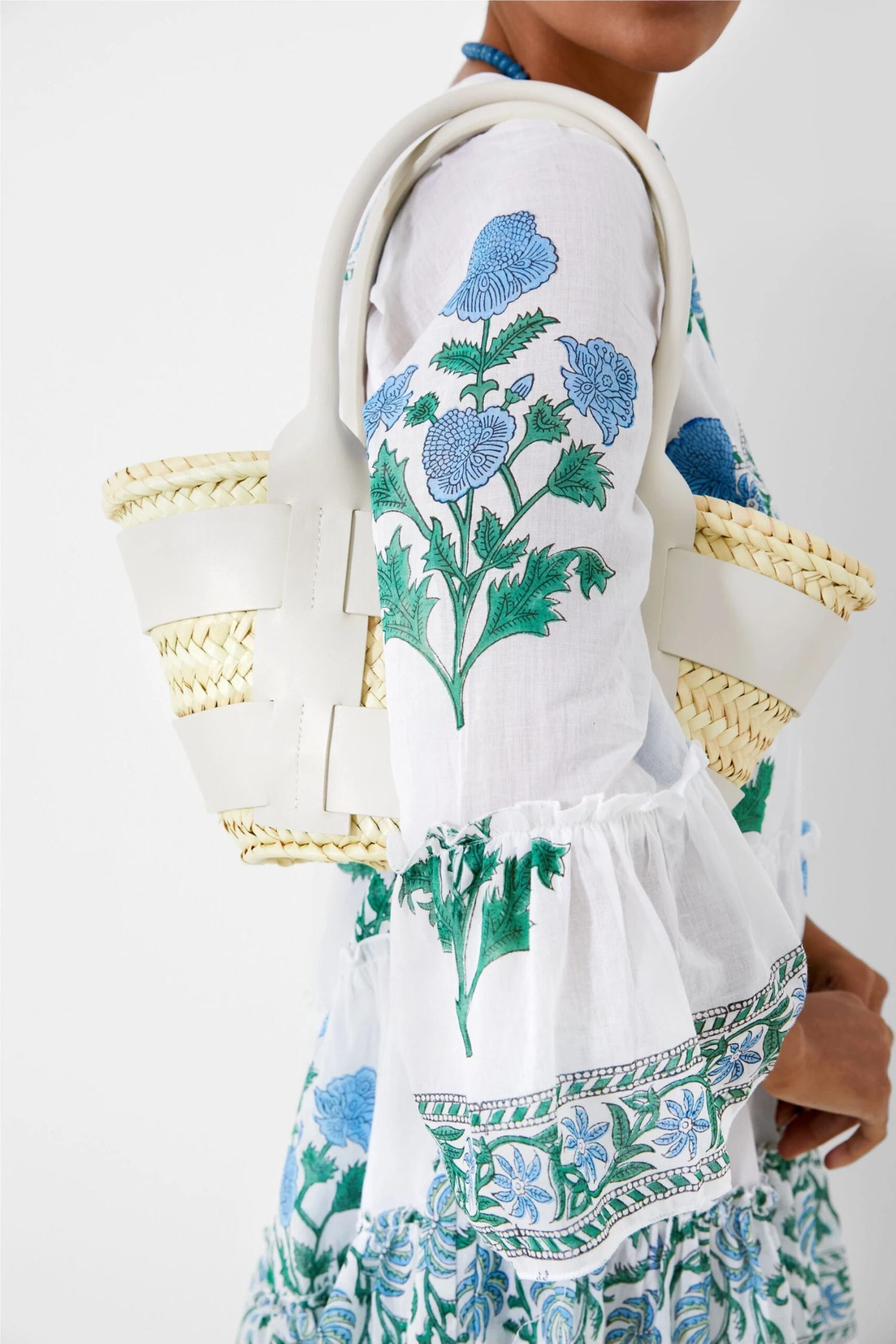 If you are loving the raffia bag trend this season, but looking for something a little bit more luxe and elevated, the White Mini Santorini is here to deliver. Easily fitting your everyday essentials, this structured silhouette is crafted from handwoven palm leaves with a raw-edge leather harness detail. Two comfortable tubular handles allow it to be carried by hand or over the shoulder, giving you the styling versatility needed to pair it with anything from breezy caftans to white denim.