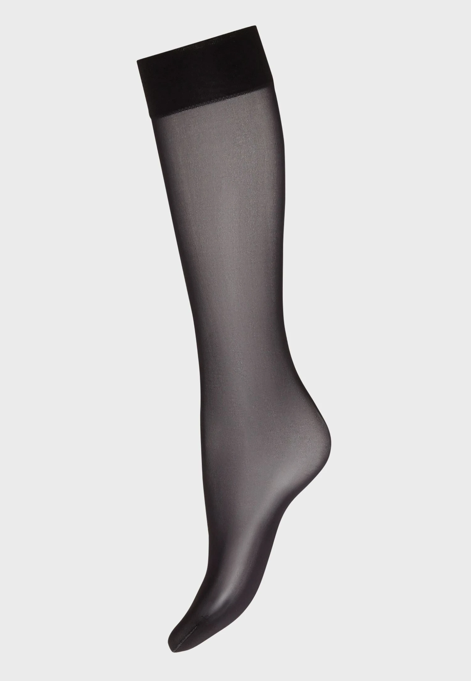 The perfect addition to a discreet outfit, the Black Individual 10 Knee Socks are light as a feather and ultra-chic. Complete with a wide band at the leg opening for a comfortable feel, and a reinforced toe for security inside your shoes, this sheer style is a must-have. For a subtle cool factor, pair these with a pleated skirt or under a maxi dress for the illusion of tights!
